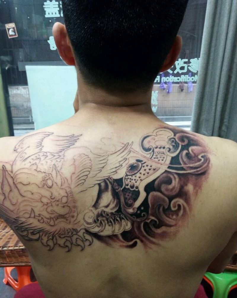 后背貔貅纹身图片_背部传统动物成品纹身图案