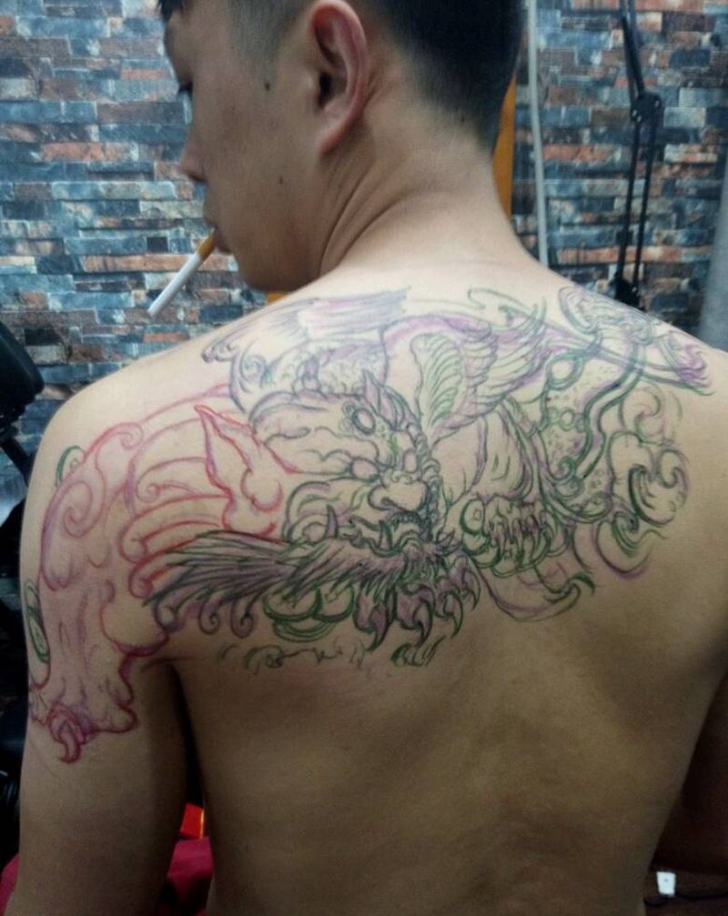 后背貔貅纹身图片_背部传统动物成品纹身图案