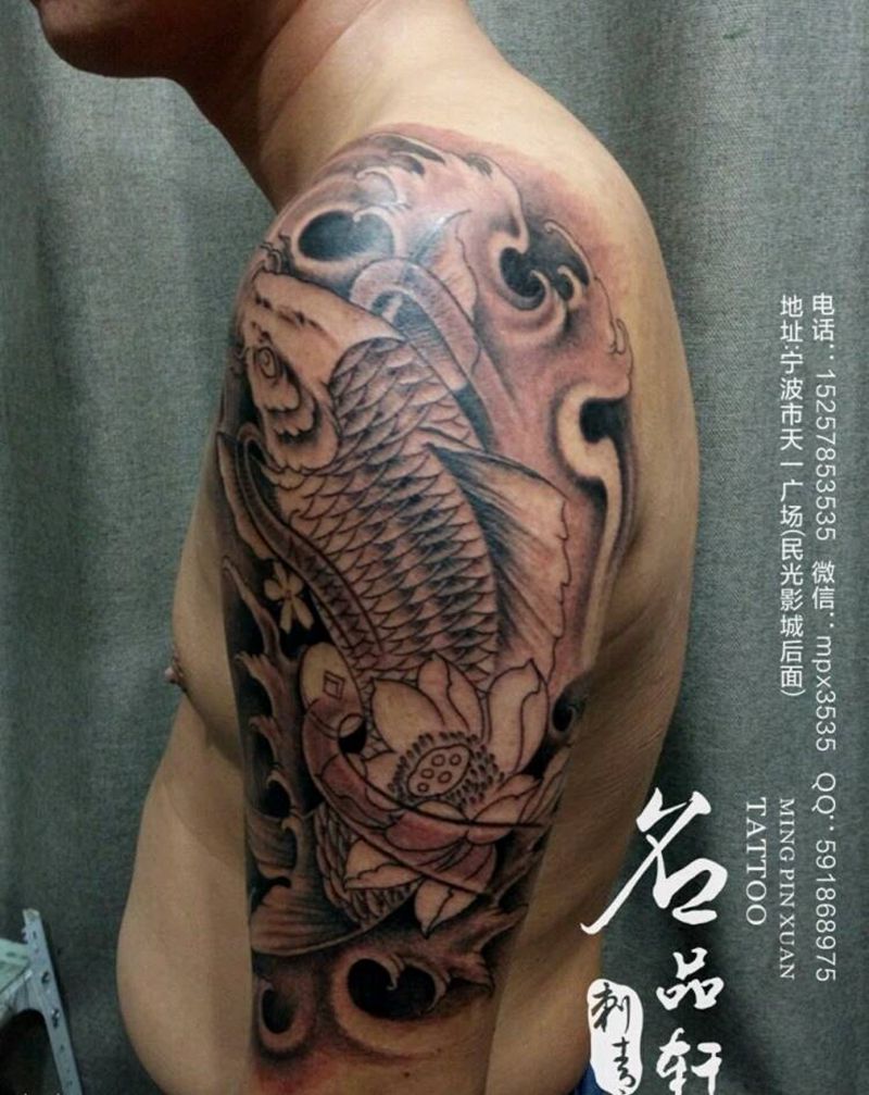 当前位置: 首页 >浙江省宁波市纹身店-名品轩刺青纹身图案>大臂鲤鱼纹身图片_手臂传统动物成品纹身图案