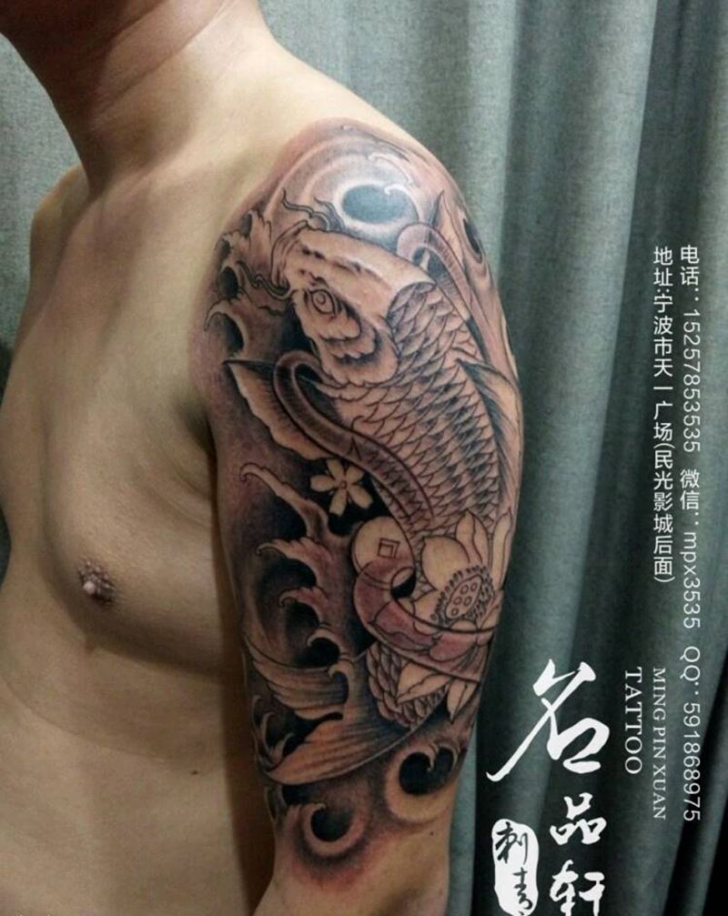 当前位置: 首页 >浙江省宁波市纹身店-名品轩刺青纹身图案>大臂鲤鱼纹身图片_手臂传统动物成品纹身图案