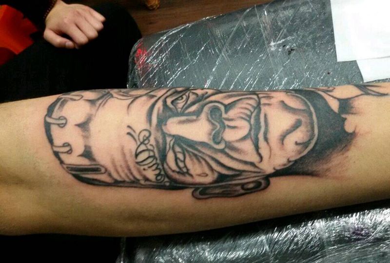 当前位置: 首页 >浙江省宁波市纹身店-名品轩刺青纹身图案>肖像纹身图片_手臂欧美肖像写实人物成品纹身图案