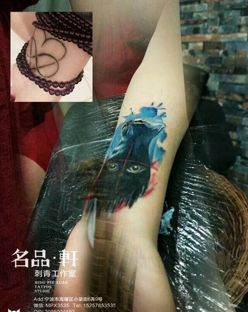 当前位置: 首页 >浙江省宁波市纹身店-名品轩刺青纹身图案>遮盖纹身纹身图片_手臂欧美清新动物成品纹身图案