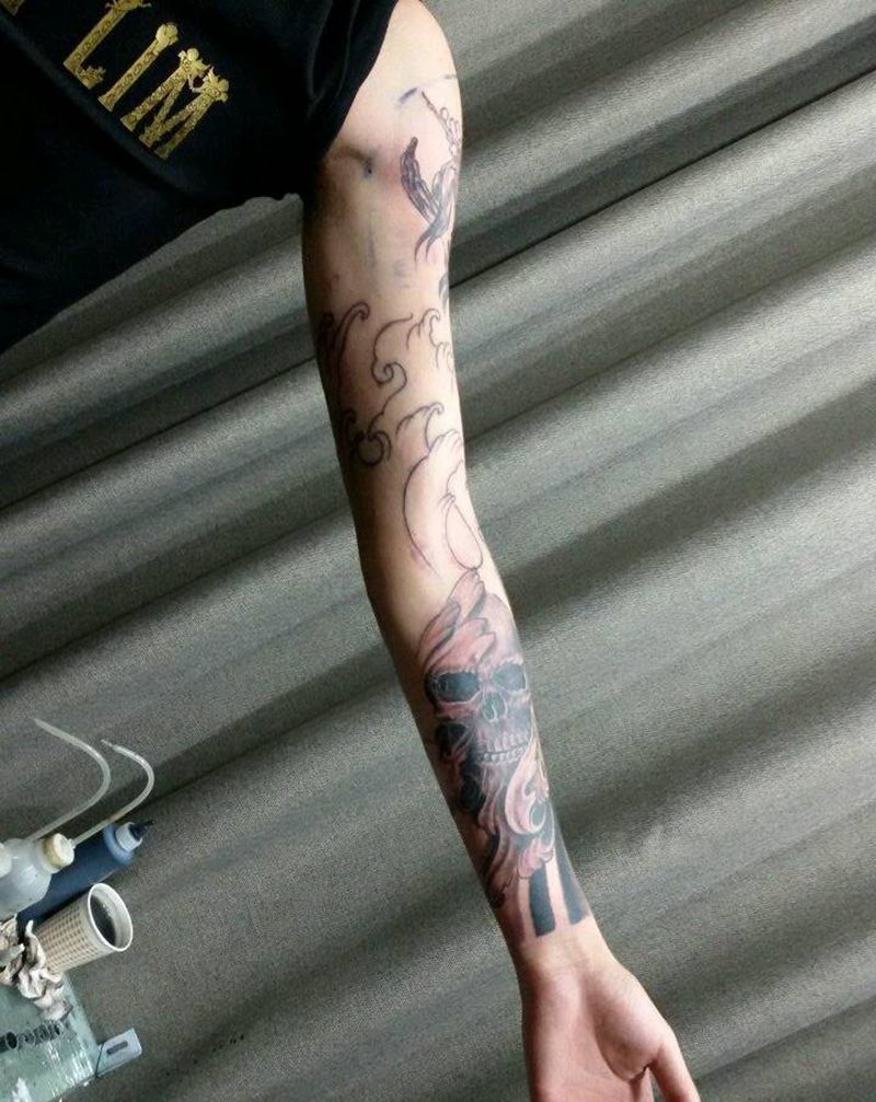 当前位置: 首页 >浙江省宁波市纹身店-名品轩刺青纹身图案>般若花臂纹身图片_手臂传统鬼神原创成品纹身图案