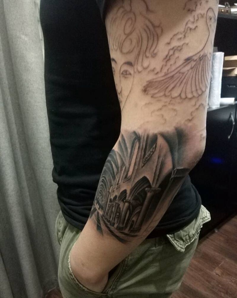 花臂(未完待续)纹身图片_手臂欧美肖像写实几何人物静物宗教原创纹身图案