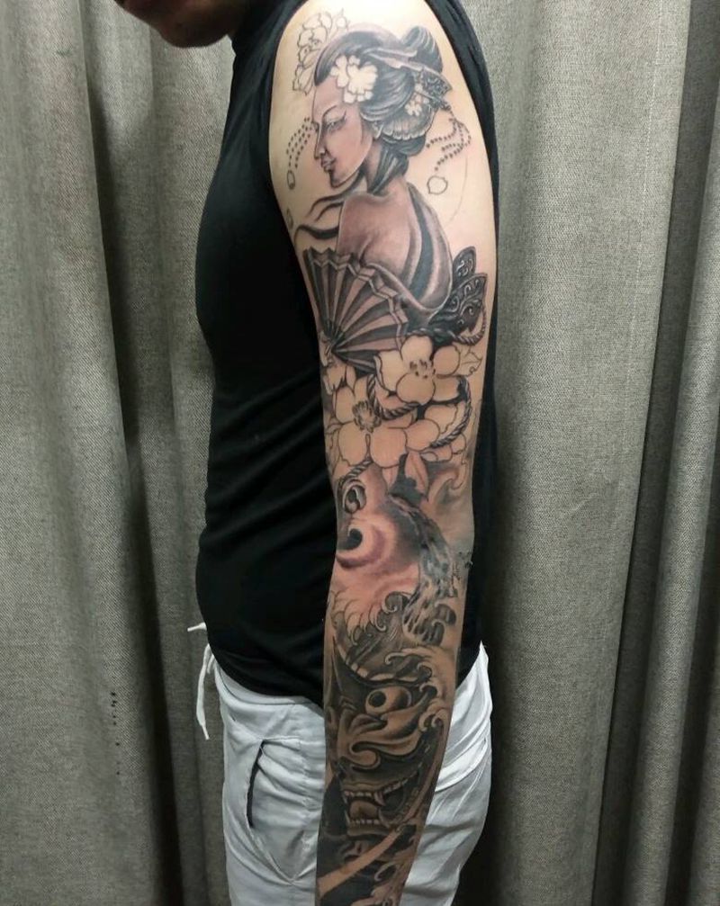 当前位置: 首页 >浙江省宁波市纹身店-名品轩刺青纹身图案>艺妓般若花臂(未完待续)纹身图片_手臂传统肖像人物鬼神成品纹身图案