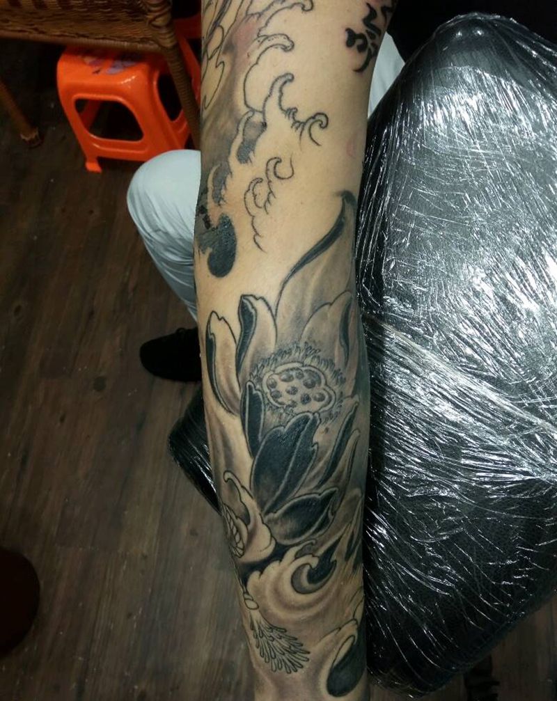 • T网红王老大花腿龙纹身图片_腿部新传统纹身图案