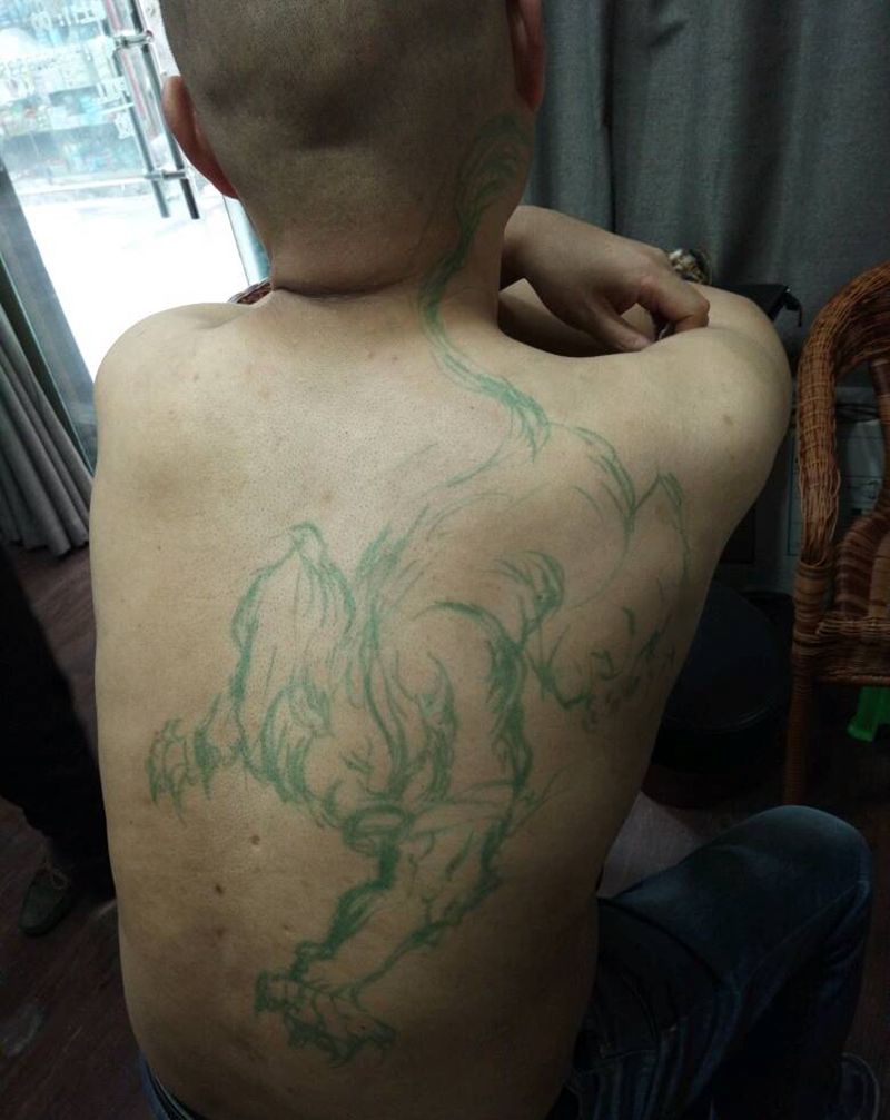 当前位置: 首页 >浙江省宁波市纹身店-名品轩刺青纹身图案>后背神兽纹身图片_肩部背部传统动物鬼神成品纹身图案