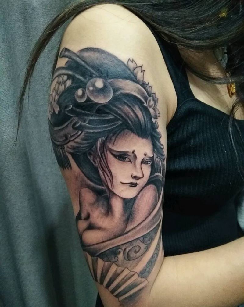 当前位置: 首页 >浙江省宁波市纹身店-名品轩刺青纹身图案>大臂艺妓纹身图片
