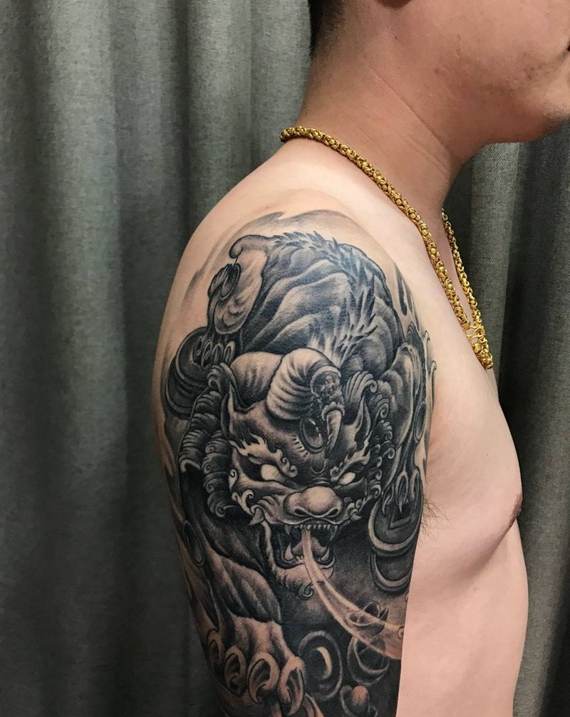 大臂貔貅纹身图片_手臂新传统纹身图案