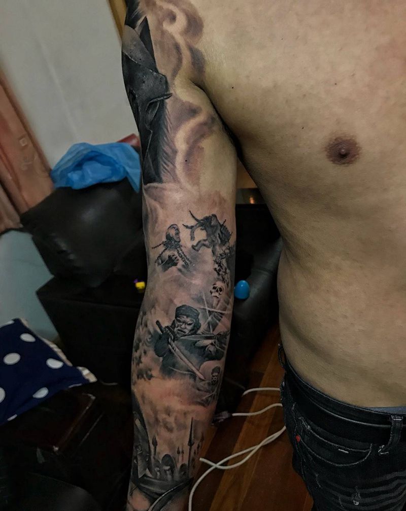 当前位置: 首页 >浙江省宁波市纹身店-名品轩刺青纹身图案>花臂纹身图片_手臂手部欧美写实人物 花臂纹身图案