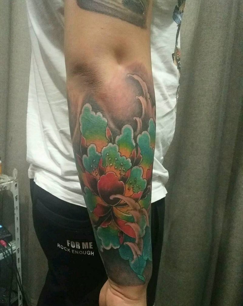包小臂――牡丹纹身图片_手臂传统植物成品纹身图案