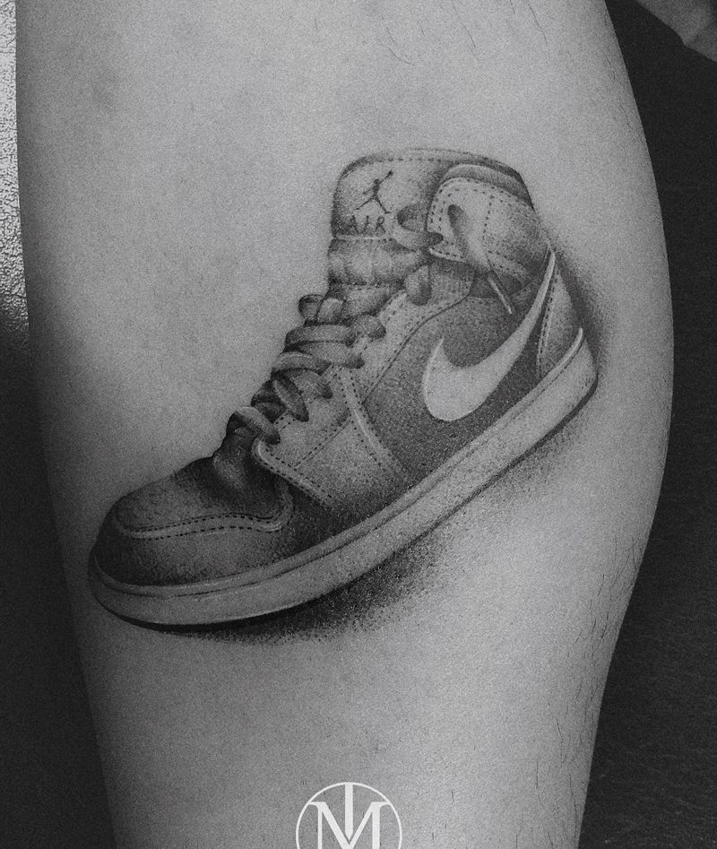 当前位置: 首页 >浙江省宁波市纹身店-一墨刺青纹身图案>一只量脚定制的A锥纹身图片_腿部手臂欧美写实点刺纹身图案