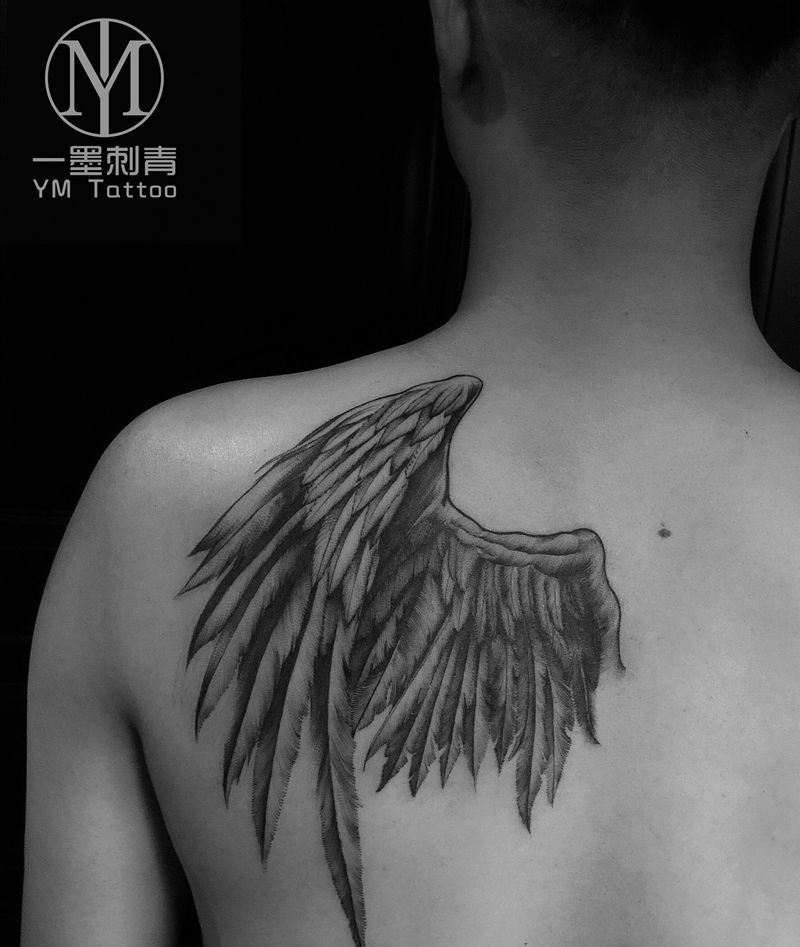 当前位置: 首页 >浙江省宁波市纹身店-一墨刺青纹身图案>翅膀纹身图片_肩部背部欧美写实点刺纹身图案