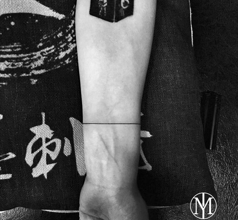 当前位置: 首页 >浙江省宁波市纹身店-一墨刺青纹身图案>直线作品纹身图片_手臂肩部几何图腾直线纹身图案
