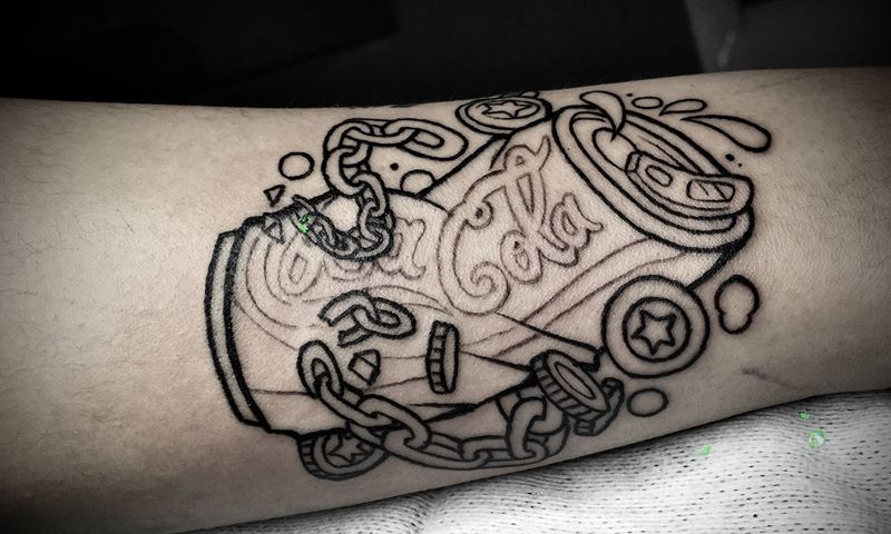 当前位置: 首页 >浙江省宁波市纹身店-程迷刺青纹身图案>易拉罐可口可乐纹身图片_手臂手部New School易拉罐纹身图案
