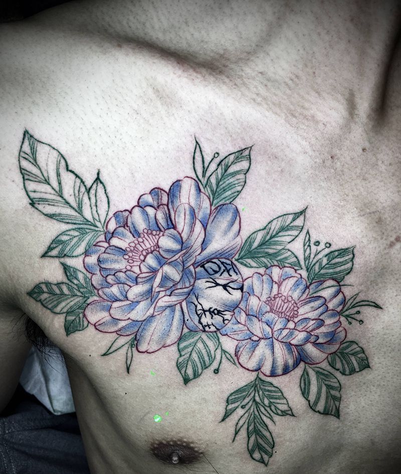 • 女性大花胸纹身_43张霸气漂亮的女性大花胸纹身图案作品