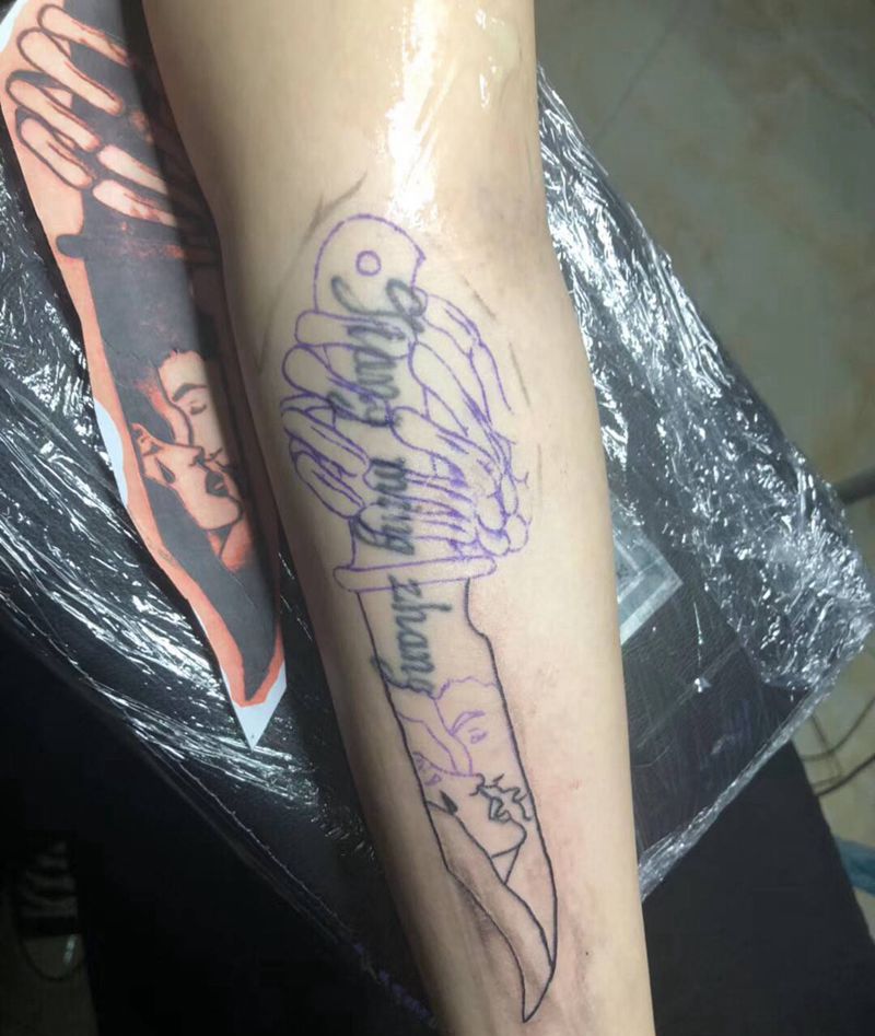 当前位置: 首页 >浙江省宁波市纹身店-程迷刺青纹身图案>匕首遮盖纹身图片_手臂暗黑匕首纹身图案