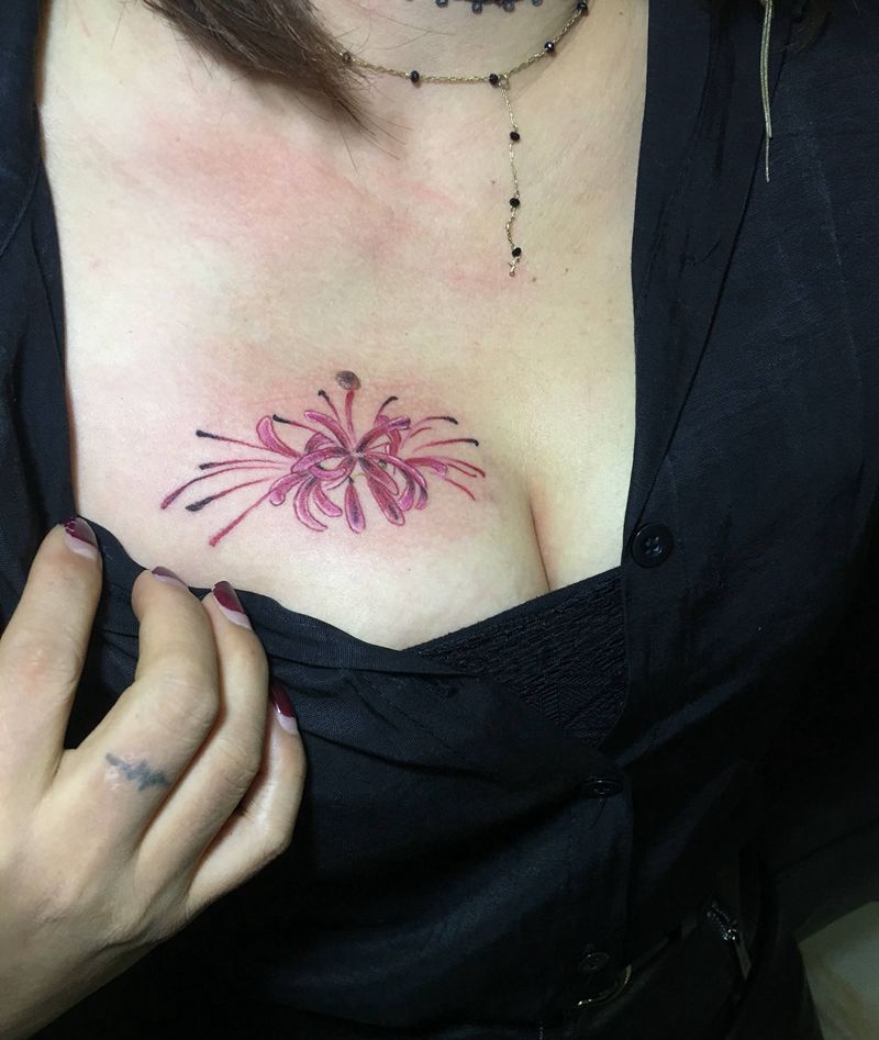 • 女性大花胸纹身_43张霸气漂亮的女性大花胸纹身图案作品