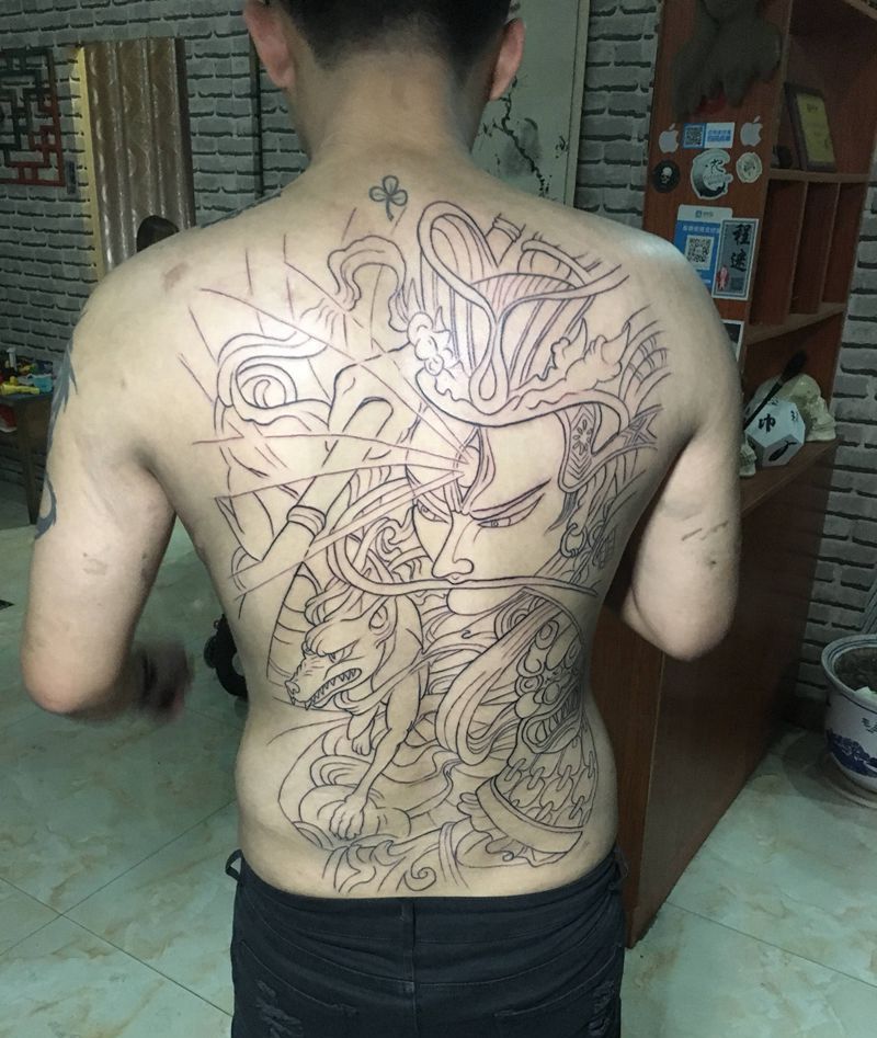 当前位置: 首页 >浙江省宁波市纹身店-程迷刺青纹身图案>二郎神线条纹身图片_背部新传统纹身图案