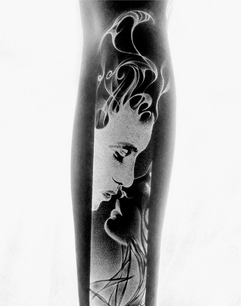 当前位置: 首页 >浙江省宁波市纹身店-一墨刺青纹身图案>非黑即白纹身图片_手臂欧美写实点刺纹身图案
