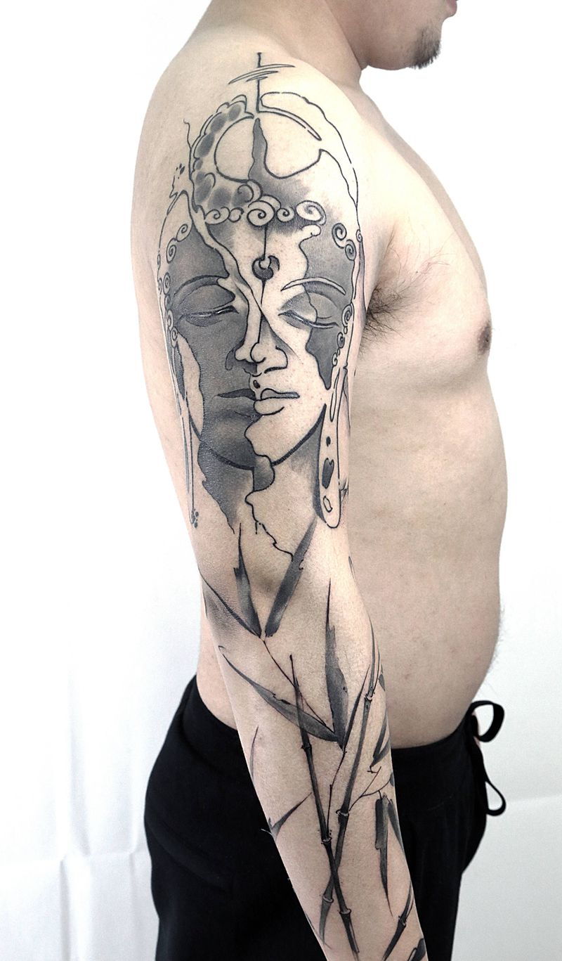 黑灰满背纹身图案