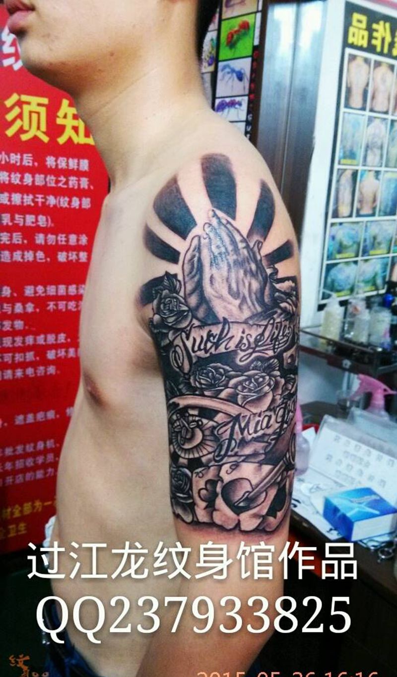 过江龙纹身馆纹身图片_欧美传统清新肩部手臂手部动物人物鬼神纹身图案