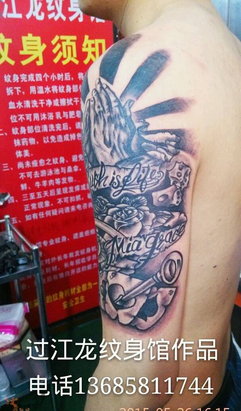 过江龙纹身馆纹身图片_欧美传统清新肩部手臂手部动物人物鬼神纹身图案