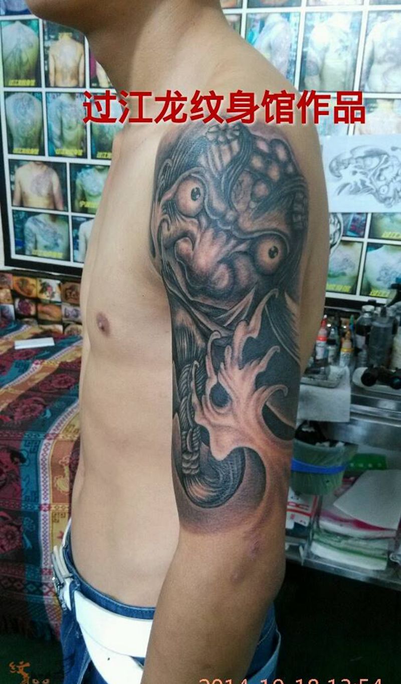 过江龙纹身馆纹身图片_欧美传统清新肩部胸部腹部腰部动物人物图腾纹身图案