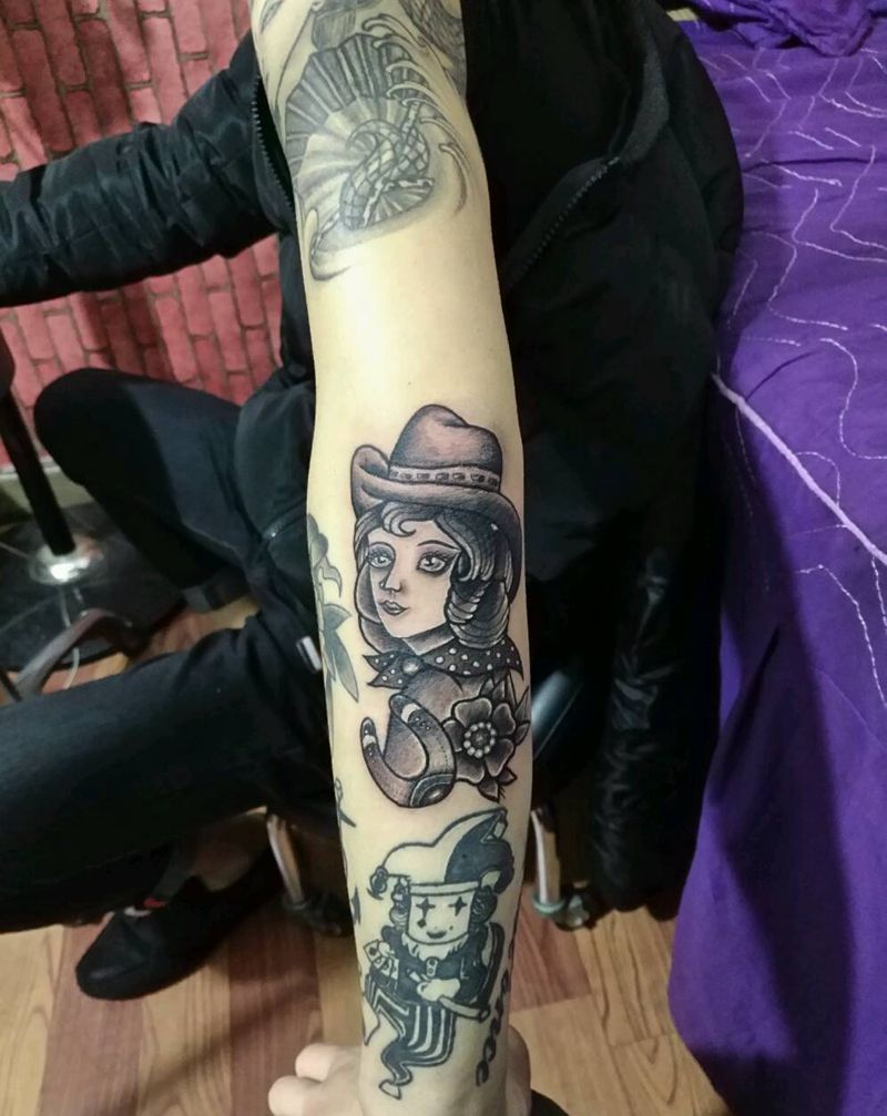 • T包小腿吹火男+阿多福纹身图片_腿部老传统新传统吹火男阿