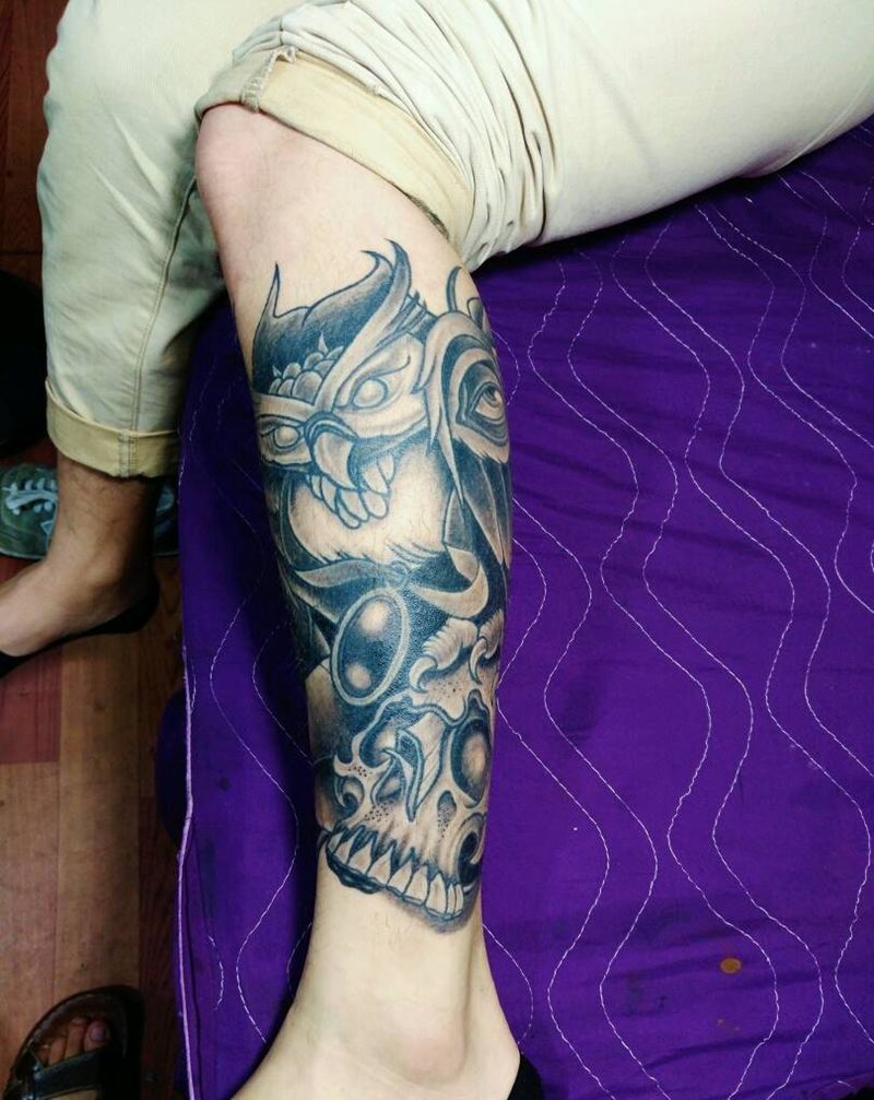 • T网红王老大花腿龙纹身图片_腿部新传统纹身图案