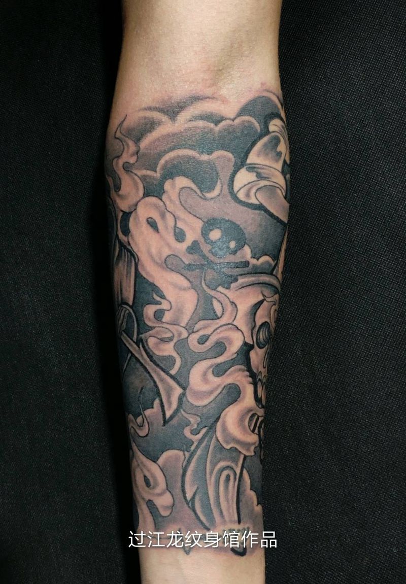 黑灰满背纹身图案
