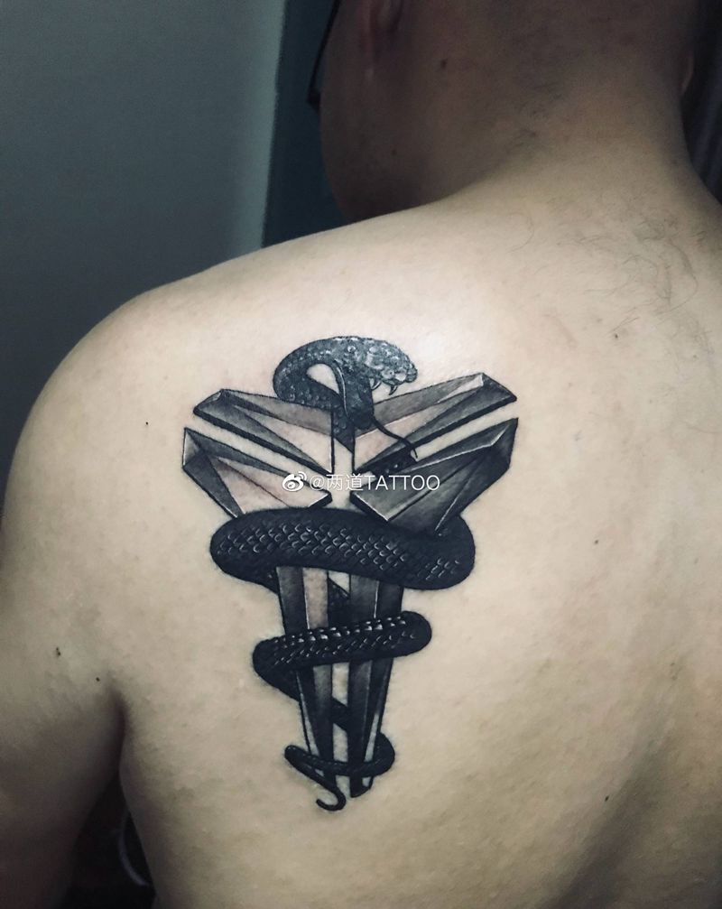 科比纹身,黑曼巴纹身图片_肩部背部欧美写实纹身图案