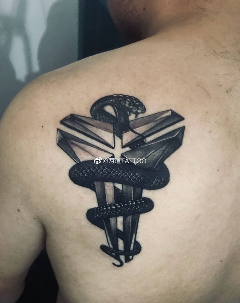 科比纹身,黑曼巴纹身图片_肩部背部欧美写实纹身图案