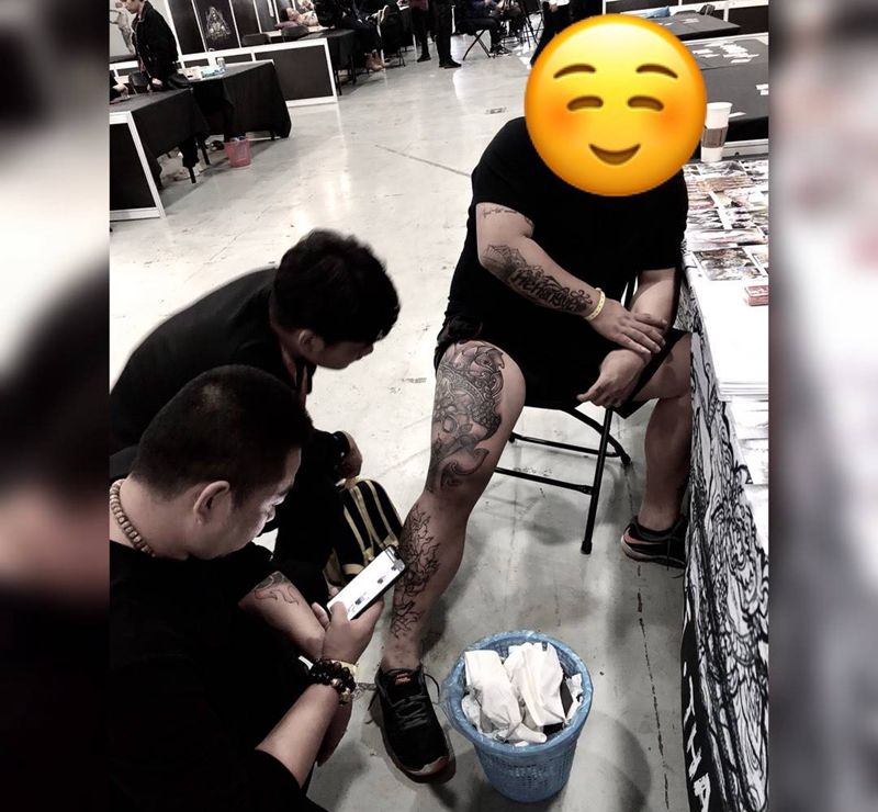 • T网红王老大花腿龙纹身图片_腿部新传统纹身图案