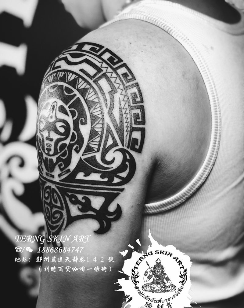 当前位置: 首页 >浙江省宁波市纹身店-腾.刺青纹身图案>上臂玛雅图腾作品纹身图片_成品肩部手臂图腾纹身图案