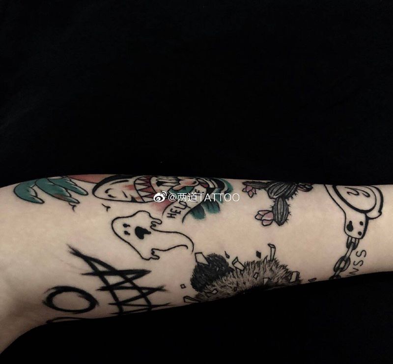 欧美风小花臂纹身纹身图片_手臂New School纹身图案