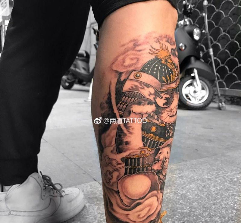 • T包小腿吹火男+阿多福纹身图片_腿部老传统新传统吹火男阿