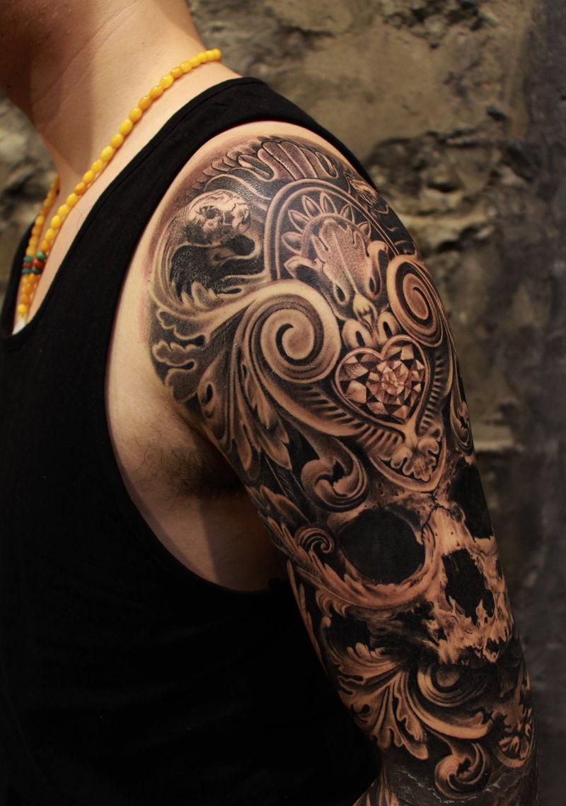 欧美黑灰纹身图片_手臂欧美写实纹身图案