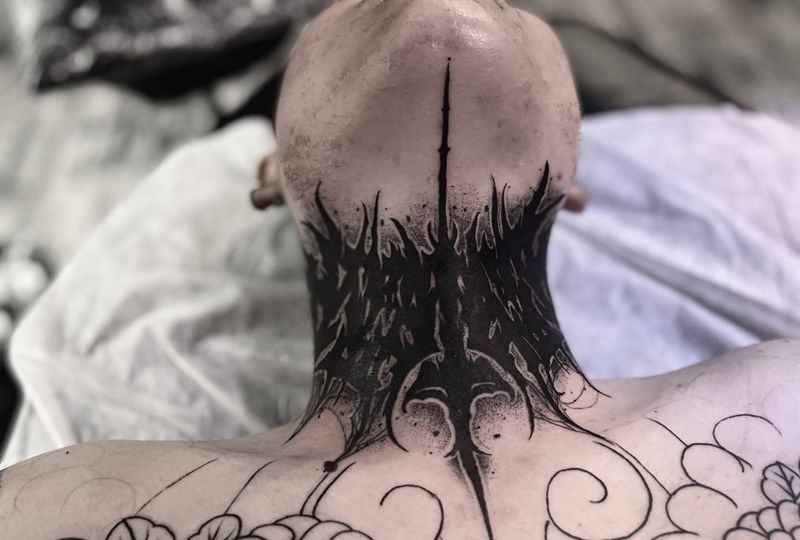 当前位置: 首页 >浙江省宁波市纹身店-Y.刺青 TATTOO纹身图案>暗黑花体纹身图片_点刺纹身图案