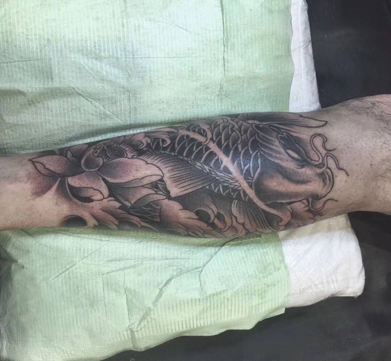 当前位置: 首页 >浙江省宁波市纹身店-Y.刺青 TATTOO纹身图案>小腿鲤鱼纹身图片