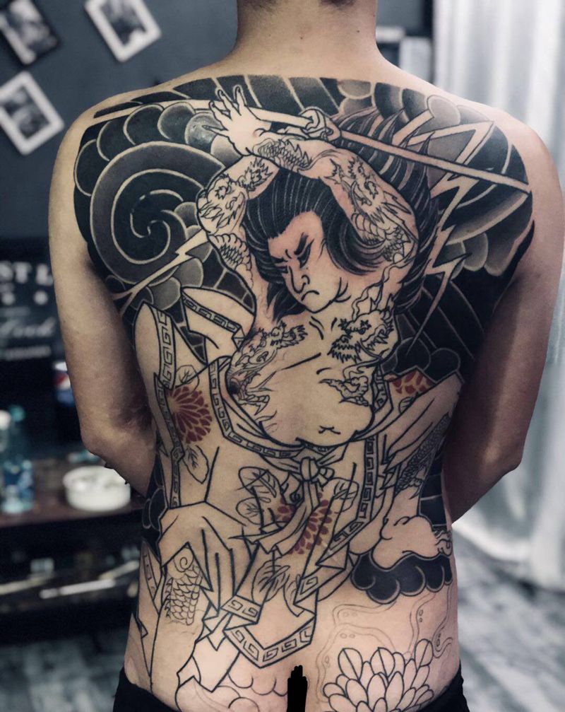 • 黑灰满背纹身图案