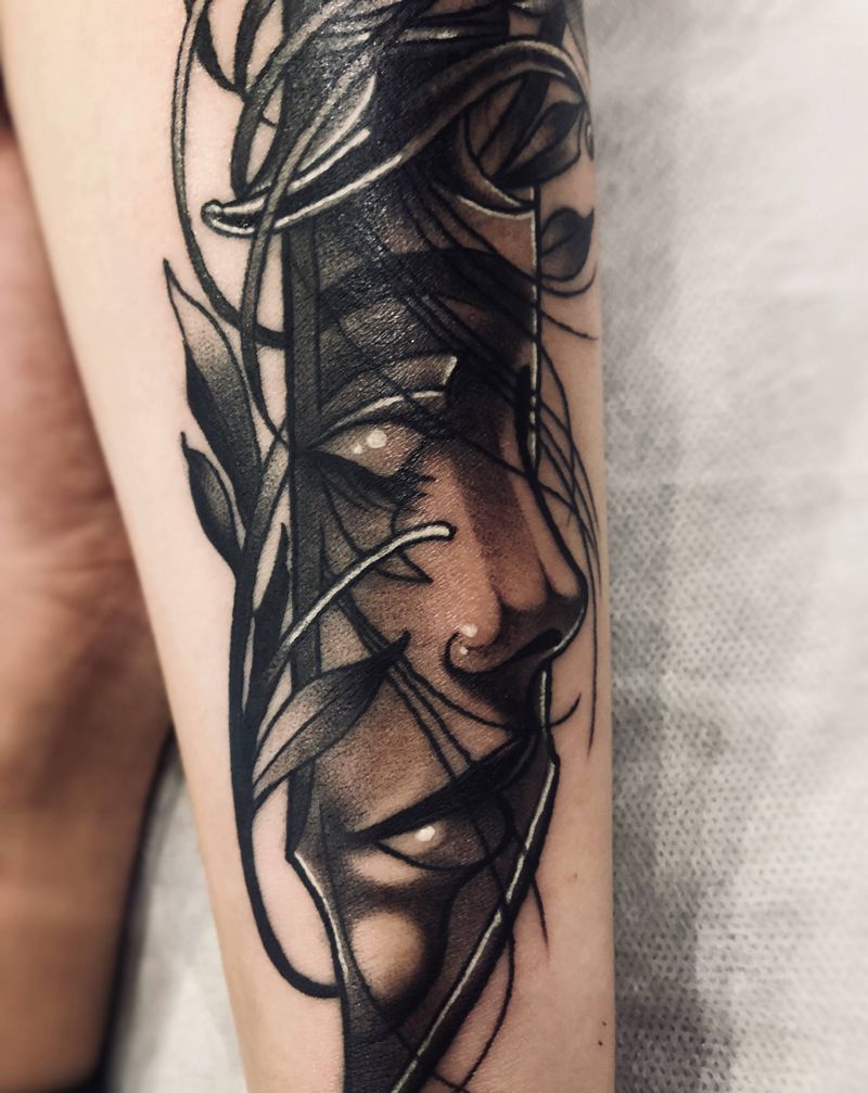 当前位置: 首页 >浙江省宁波市纹身店-Y.刺青 TATTOO纹身图案>匕首纹身图片_手臂欧美写实纹身图案