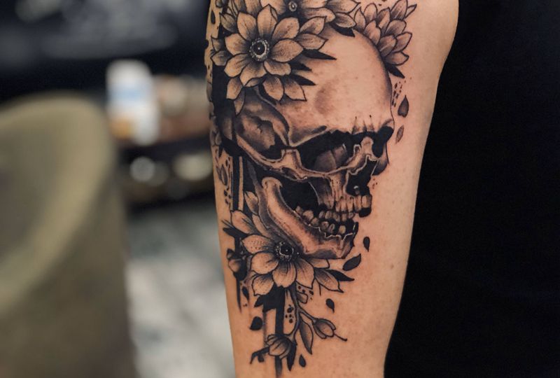 当前位置: 首页 >浙江省宁波市纹身店-Y.刺青 TATTOO纹身图案>写实骷髅纹身图片_欧美写实纹身图案