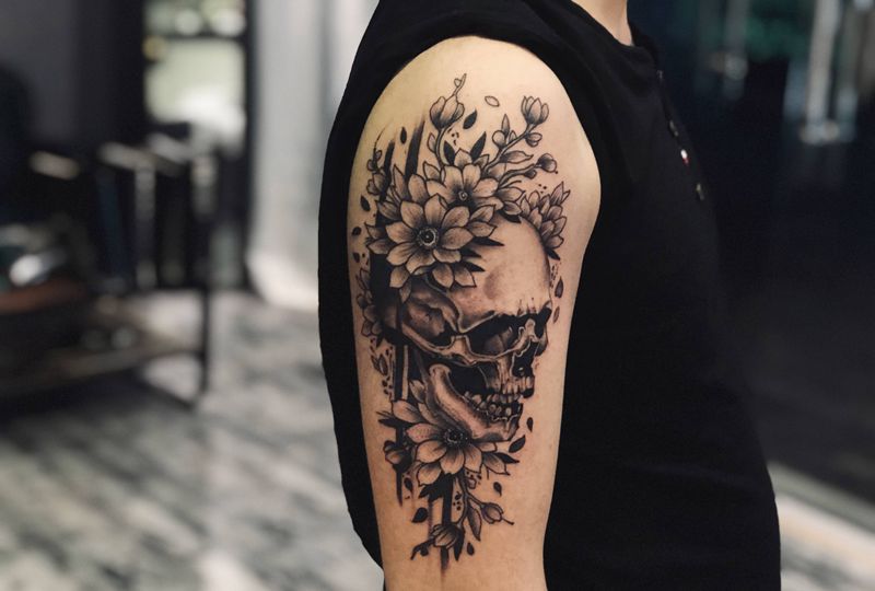 当前位置: 首页 >浙江省宁波市纹身店-Y.刺青 TATTOO纹身图案>写实骷髅纹身图片_欧美写实纹身图案