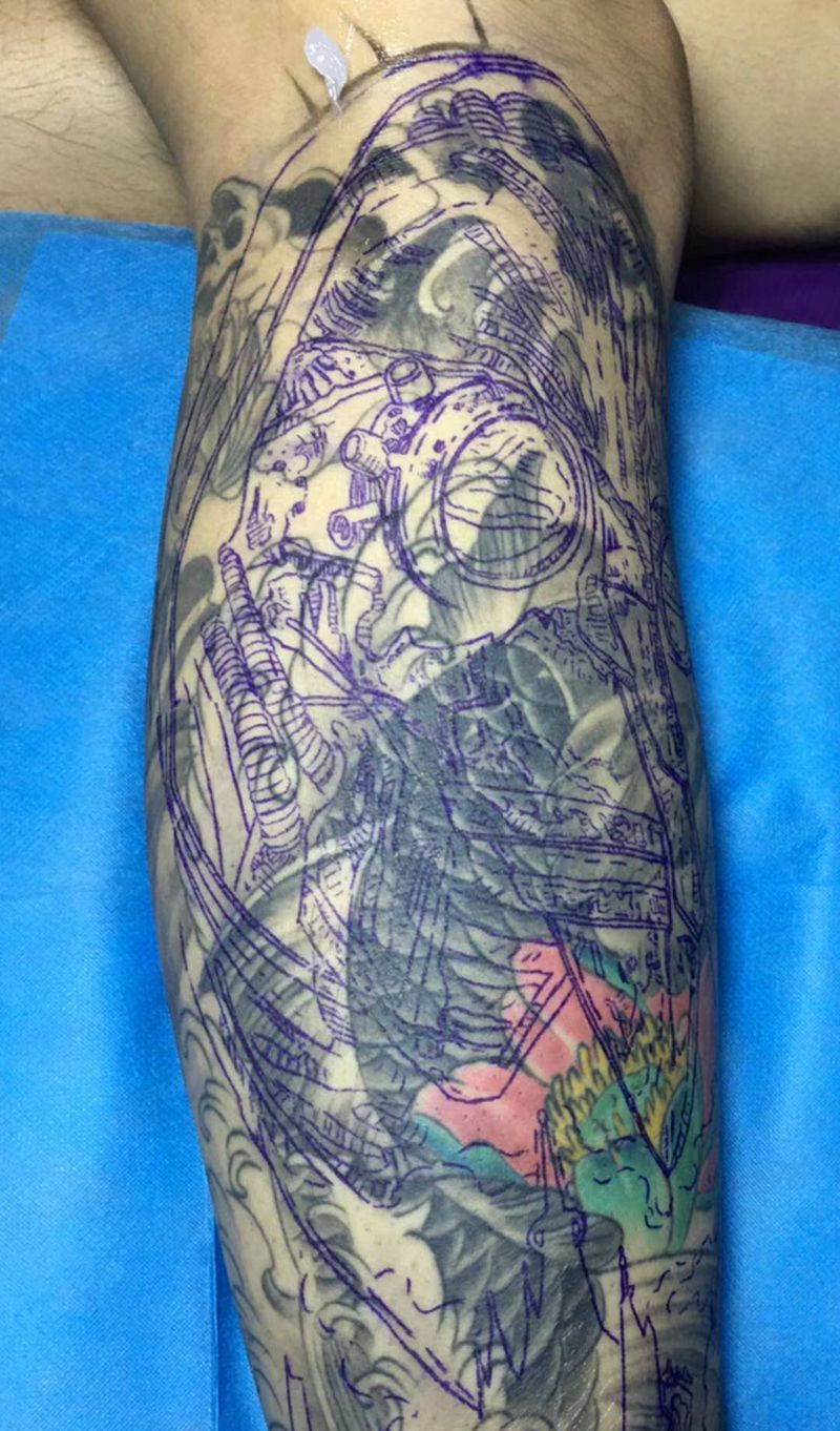 当前位置: 首页 >浙江省宁波市纹身店-帝玖刺青纹身图案>小腿暴力遮盖纹身图片_腿部欧美写实纹身图案