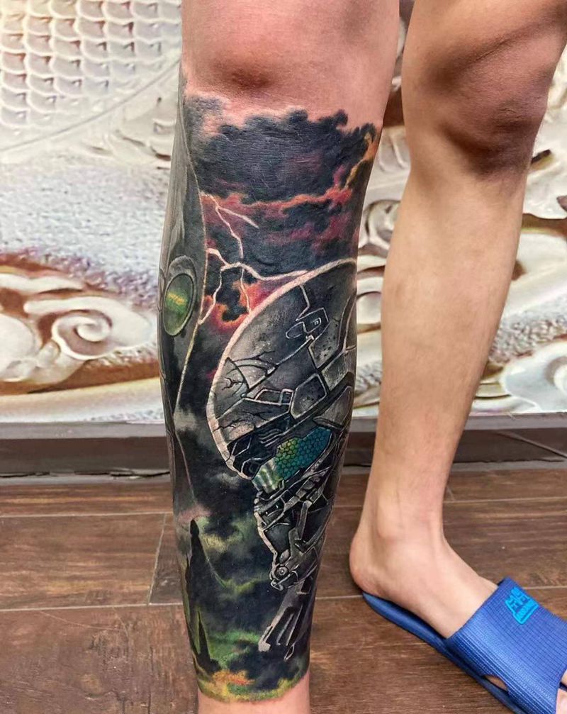 当前位置: 首页 >浙江省宁波市纹身店-帝玖刺青纹身图案>小腿暴力遮盖纹身图片_腿部欧美写实纹身图案