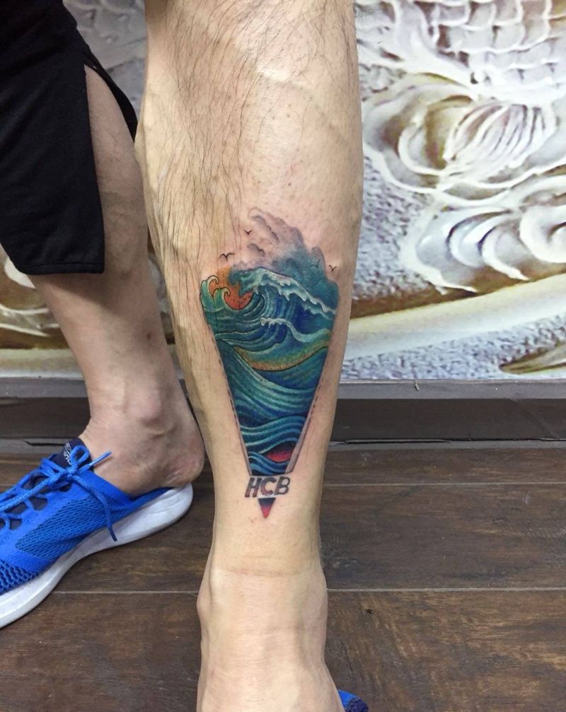• T网红王老大花腿龙纹身图片_腿部新传统纹身图案