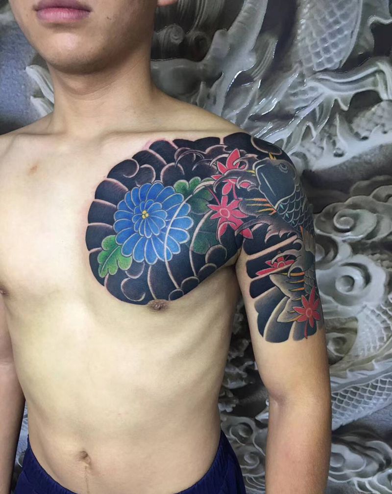 当前位置: 首页 >浙江省宁波市纹身店-帝玖刺青纹身图案>日式半胛纹身图片_胸部老传统纹身图案