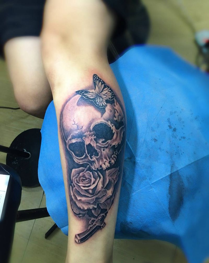 当前位置: 首页 >浙江省宁波市纹身店-帝玖刺青纹身图案>小腿写实骷髅纹身图片