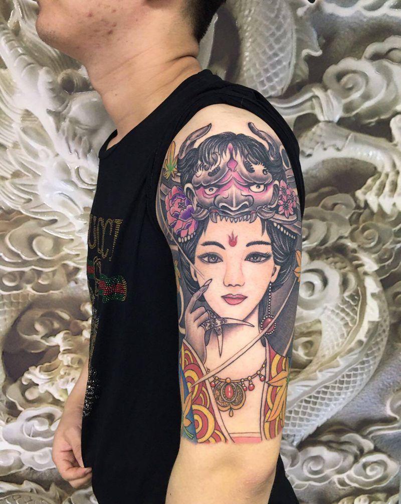 当前位置: 首页 >浙江省宁波市纹身店-帝玖刺青纹身图案>大臂艺妓纹身图片_手臂新传统纹身图案
